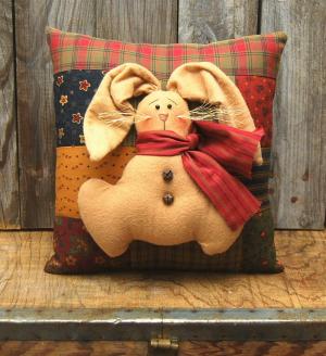 HANDMADE PRIMITIVE SPRING BUNNY RABBIT PATCHWORK PILLOW TUCK