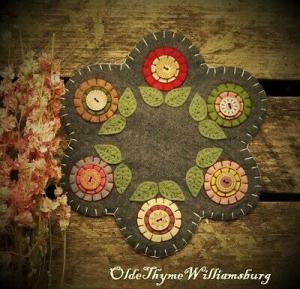 Primitive Stitchery Folk Art Flowers Penny Rug ~ Candle Mat