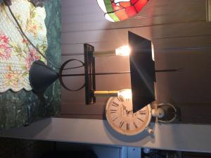 2 Primitive Vintage Clear Glass Eagle Kerosene Lamps With Tin Reflectors