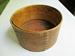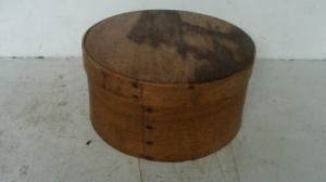 ANTIQUE PRIMITIVE BENT WOOD COVERED PANTRY BOX 8 3/4"