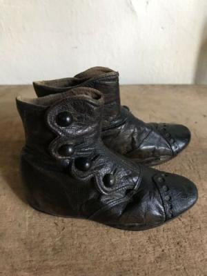 Sweet Early Antique Black Leather Child’s Button Boots Shoes AAFA Textile
