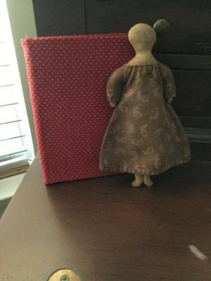 EARLY PRIMITIVE FABRIC COVERED BOOK AND CLOTH RAG DOLL