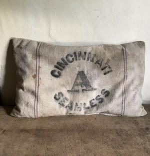 Handmade Straw Stuffed Grungy Old Antique Feed Sack Pillow Textile AAFA