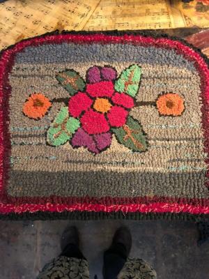 Antique Primitive Floral Hooked Wool Rug Chair Pad 12x14"