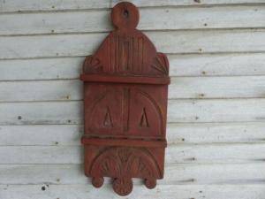 antique primitive kitchen spoon rack hand made & Carved in orignal red paint