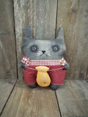 Primitive Kitty Cat Doll with Fish Shelf Sitter / Tuck Hand made Rustic