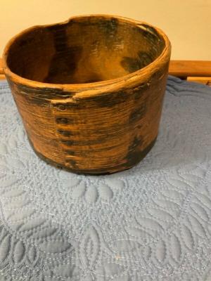 Small  Antique Primitive Wooden Grain Measure bottom has A. S.