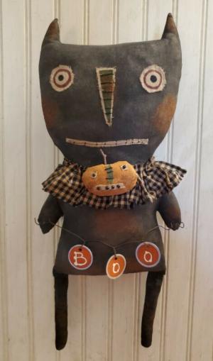 Primitive Grungy Black Kitty Cat Halloween Doll & His Boo Garland