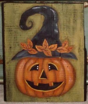 *~*PRIMITIVE*~* HP FOLK ART PRIM JACK-O-LANTERN * FALL *~* RECLAIMED WOOD