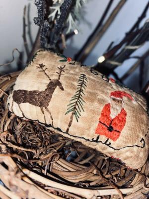 FOLK ART tiny pillow Reindeer 1768 Stitchery