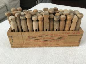 OLD WISCONSIN CHEESE BOX WITH OLD CLOTHES PINS AAFA