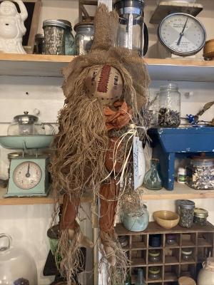 Primitive Fall Halloween Scarecrow Doll pumpkin burlap hat 2634 tall