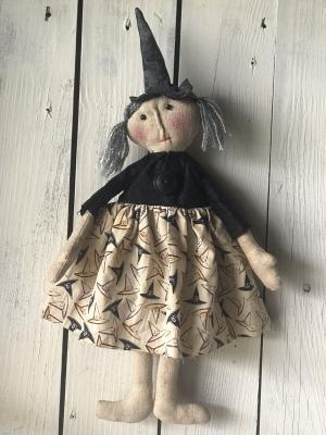 Primitive Grungy Halloween 11" Frog Witch Pumpkin Doll ~ Ro''s Cluttered Attic