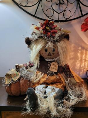 Primitive Halloween Black Pumpkin Doll on Spring ~Fall~