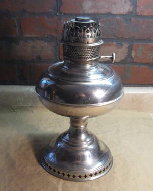 ANTIQUE NICKEL PLATED RAYO OIL OR KEROSENE LAMP