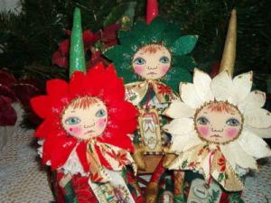Set of 3 Primitive Folk Art Pointsetta Dolls "Lollipop Kids"© By Terri'sPrims