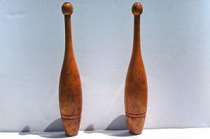 Antique Pair of Maple Juggling Pins 16" 1 lb. Beautiful Decor No Reserve