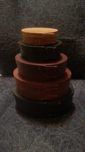 Early Style Wood Pantry Boxes Oval Finger Lapped Great Colors Loook!!!!!!!!!