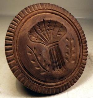 Antique Hand Carved Wood 'Sheaf of Wheat' Butter Stamp/Press/Mold c1900