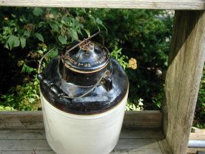 Wonderful Old Antique Crock Jar with Bale Handle and Weir No. 4 Lid