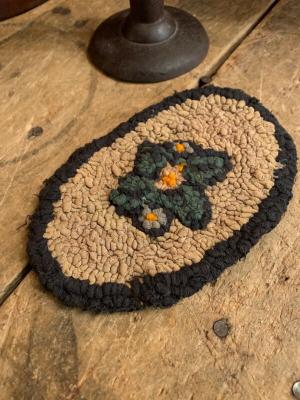 Small 6 1/2 In Early Hooked Rag Rug Candle Mat Tan Primitive Textiles Doll House