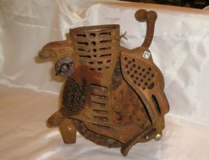 Primitive Handmade Americana Crow on Old Vintage Tin Industrial Funnel