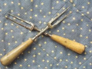 Two Revolutionary War era forks. 2 tine, Horn handles. 18th-early 19th century