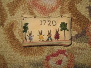 Primitive tiny Sampler Pillow~1720~The Four Happy Rabbits~Early Quilt~ Folk Art