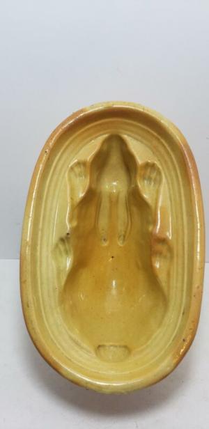 ANTIQUE YELLOWARE CAKE MOLD-EASTER-RABBIT-BUNNY-BUNDT-1840S?1850S?STONEWARE-8.5
