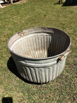 Antique Vintage round Galvanized Metal Wash tub bushel basket ribbed 1 1/2