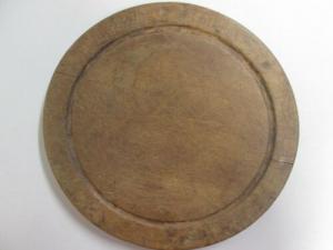 ANTIQUE PRIMITIVE HAND CARVED WOODEN BREAD BOARD - OVAL 10 1/2" X 10" X 1"