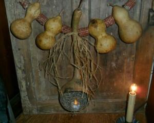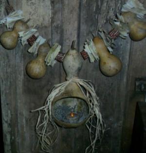 Primitive Gourd Garland, Large Center Light - Early Look Homestead Gourds, Cobs