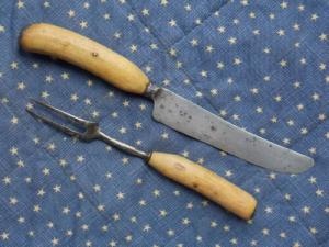 Antique 2 tine Mess fork and knife. Sheffield. Mexican War through Civil War era