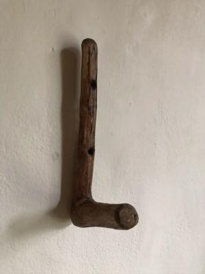 Small Old Hand Carved Wooden Hook Hanging Primitive Patina AAFA Worn