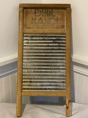 Vtg Columbus Washboard Co Dubl Handi Wood & Galvanized Metal Wash Scrub Board