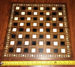 Vintage Inlaid Wood Checker Chess Game Board Pegged Handmade Hinged Primitive
