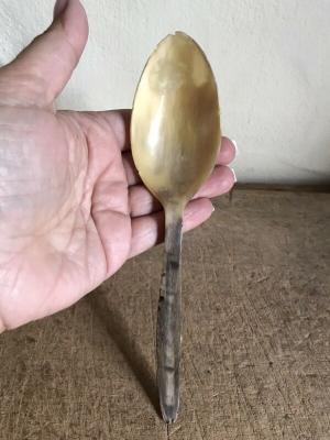 BEST Early Antique Hand Carved Horn Spoon Form BEST COLOR Black Cream AAFA