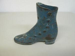 ANTIQUE CAST IRON VICTORIAN LADIES BOOT OR SHOE WITH ORIGINAL BLUE PAINT