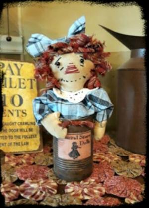 ****Primitive` Handmade` *Raggedy Ann in a Rusty Can`General Store Dolls****