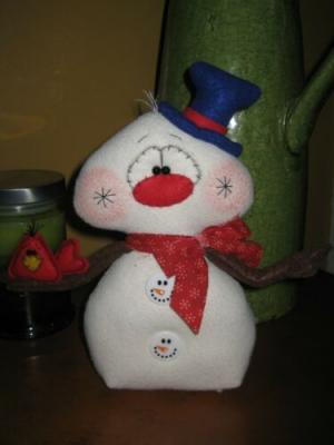 PRIMITIVE HC HOLIDAY CHRISTMAS SNOWMAN W/ CARDINAL DOLL ORNIE DOLL SHELF SITTER