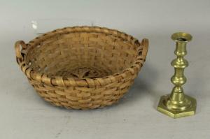 A RARE 19TH C TWO HANDLED SPLINT BASKET IN ORIGINAL SURFACE NICE THICK SPLINT