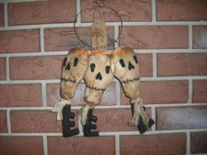 Primitive Creepy Halloween Pumpkin Doll Painted Face Grunge Look Tabletop Decor