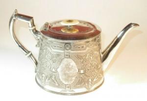 NICE 19TH CENTURY SILVER AND PEWTER TEAPOT WITH MAKER''S NAME