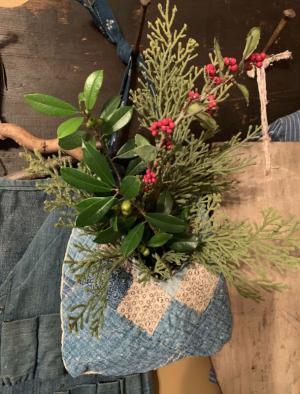 Sewing Pocket From Early Blue Calico Quilt Christmas Ready Dress Or Peg Rack