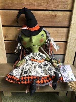 Primitive Grungy 17 Inch Autumn Make Do Doll on Old Bobbin Ro''s Cluttered Attic