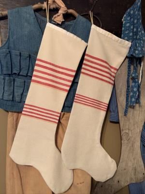 22 In Stockings Lot Red Tan Stripe Made From Early Lindsey Woolsey Blankets