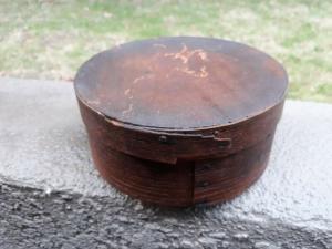 Primitive Antique Wooden Banded Shaker Style Box Round AAFA