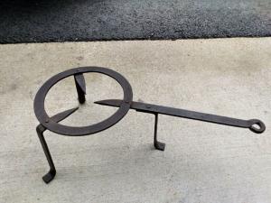 ANTIQUE WROUGHT IRON FIREPLACE POT STAND HOLDER 18 INCHES LONG 6 1/2 INCHES HIGH