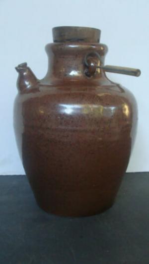 19th C stoneware alkaline glaze bail handled whiskey jug, no reserve **