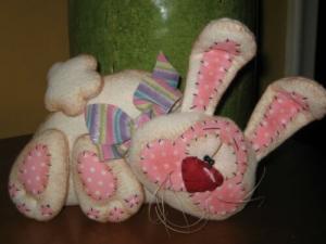PRIMITIVE HC EASTER BUNNY RABBIT DOLL ORNIE BOWL FILLER TUCK